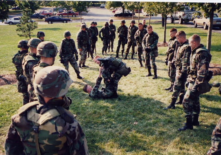 Hand-to-hand combat techniques adapted from modern military and civilian defense.